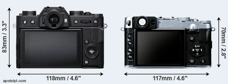If the front view area (width x height) of the cameras is taken as an aggregate measure of their size, the Fujifilm X20 is notably smaller (16 percent) than the Fujifilm X-T20. In this context, it is worth noting that neither the X-T20 nor the X20 are weather-sealed.