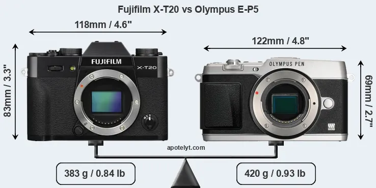 Size Fujifilm X-T20 vs Olympus E-P5