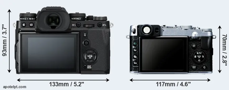 If the front view area (width x height) of the cameras is taken as an aggregate measure of their size, the Fujifilm X20 is considerably smaller (34 percent) than the Fujifilm X-T3. It is worth mentioning in this context that the X-T3 is splash and dust resistant, while the X20 does not feature any corresponding weather-sealing.
