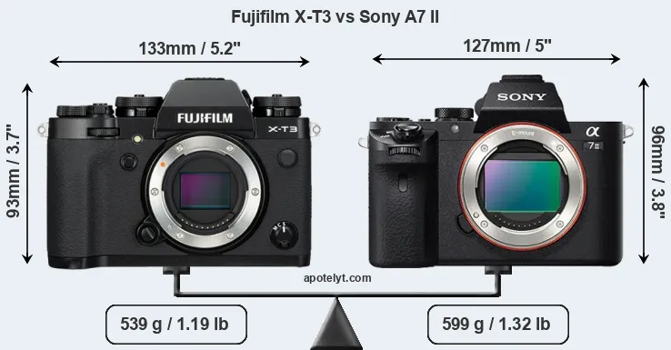 Size Fujifilm X-T3 vs Sony A7 II