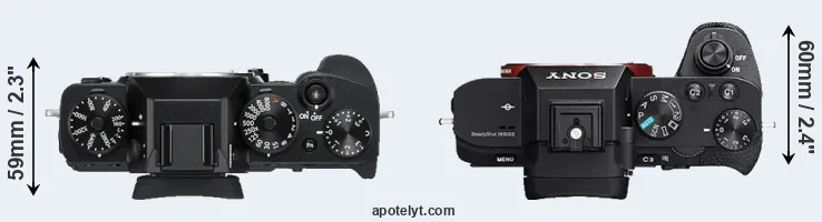 Compare X-T3 versus A7 II top