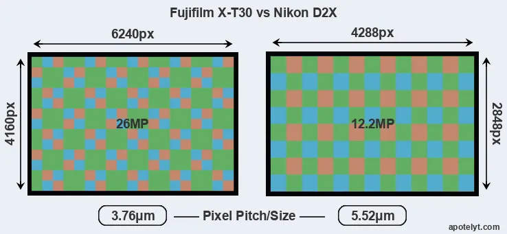 | Sensor Specs | Fujifilm X-T30 | Nikon D2X |