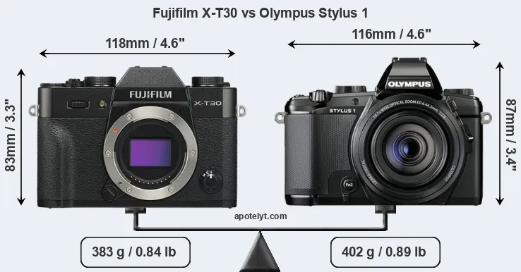 Size Fujifilm X-T30 vs Olympus Stylus 1