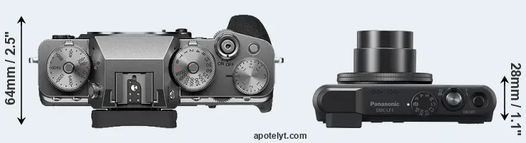 If the front view area (width x height) of the cameras is taken as an aggregate measure of their size, the Panasonic LF1 is considerably smaller (49 percent) than the Fujifilm X-T4. It is worth mentioning in this context that the X-T4 is splash and dust resistant, while the LF1 does not feature any corresponding weather-sealing.