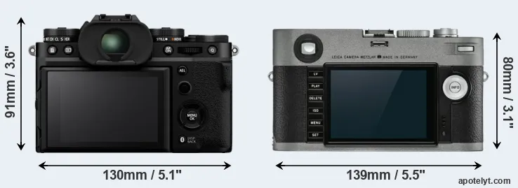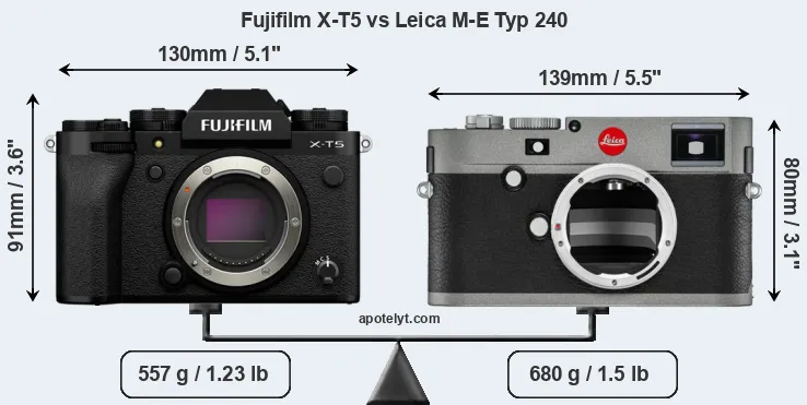 Specifications: Fujifilm X-T5 vs Leica M-E Typ 240