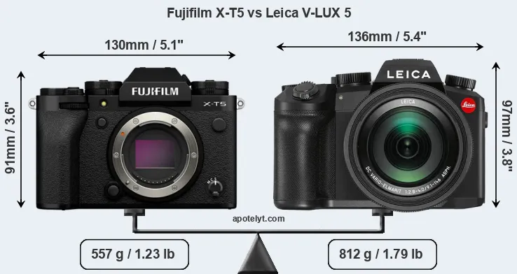 Size Fujifilm X-T5 vs Leica V-LUX 5