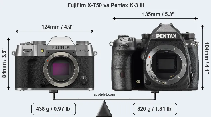 | Body Specs | Fujifilm X-T50 | Pentax K-3 III |