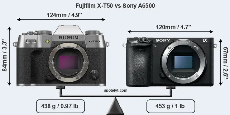 Size Fujifilm X-T50 vs Sony A6500