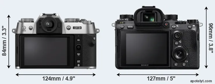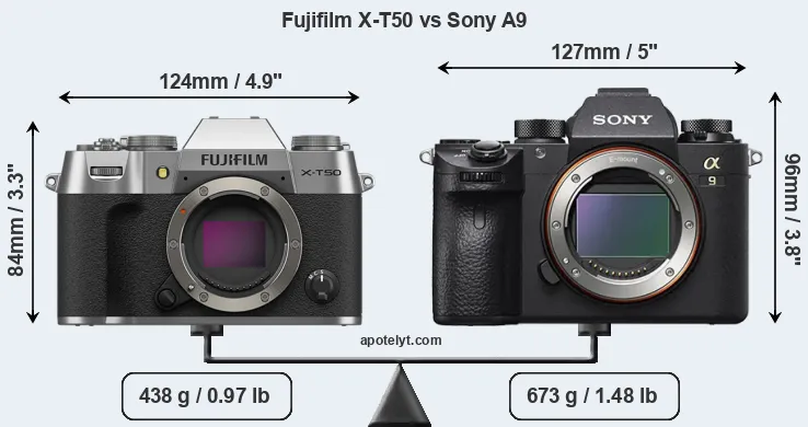 Size Fujifilm X-T50 vs Sony A9