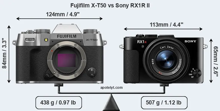 Size Fujifilm X-T50 vs Sony RX1R II