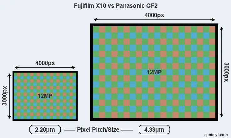 | Sensor Specs | Fujifilm X10 | Panasonic GF2 |