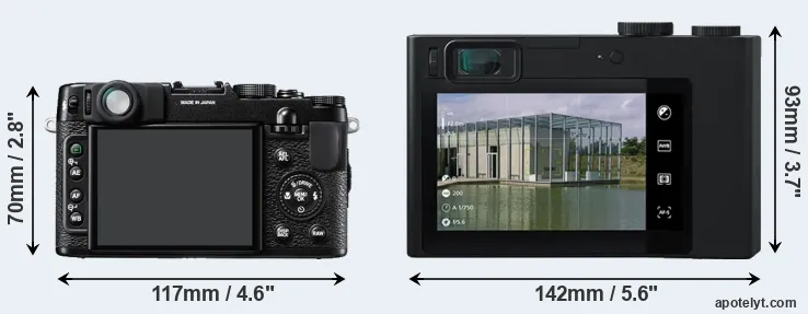 The side-by-side display below illustrates the physical size and weight of the Fujifilm X10 and the Zeiss ZX1. The two cameras are presented according to their relative size. Three successive views from the front, the top, and the rear are shown. All size dimensions are rounded to the nearest millimeter.