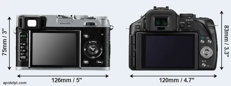 The above size and weight comparisons are to some extent incomplete and possibly misleading, as the X100 has a lens built in, whereas the G5 is an interchangeable lens camera that requires a separate lens. Attaching the latter will add extra weight and bulk to the setup. You can compare the optics available for the G5 and their specifications in the Micro Four Thirds Lens Catalog.