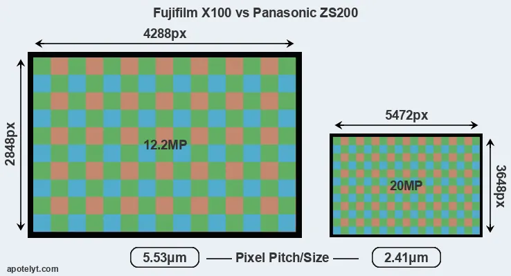 | Sensor Specs | Fujifilm X100 | Panasonic ZS200 |