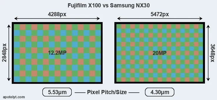 | Sensor Specs | Fujifilm X100 | Samsung NX30 |