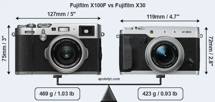 Size Fujifilm X100F vs Fujifilm X30