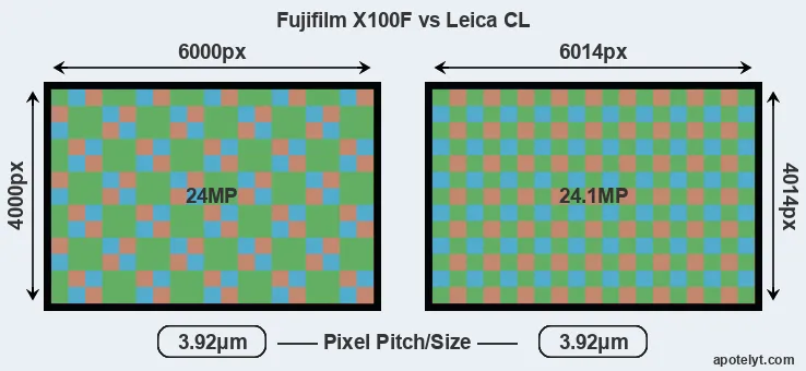 | Sensor Specs | Fujifilm X100F | Leica CL |