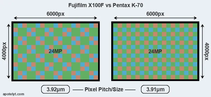 | Sensor Specs | Fujifilm X100F | Pentax K-70 |