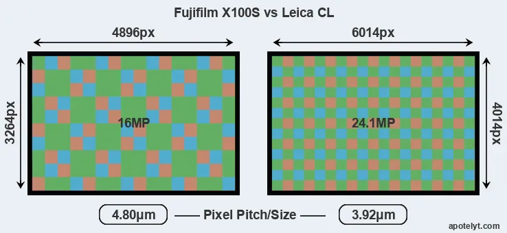 | Sensor Specs | Fujifilm X100S | Leica CL |