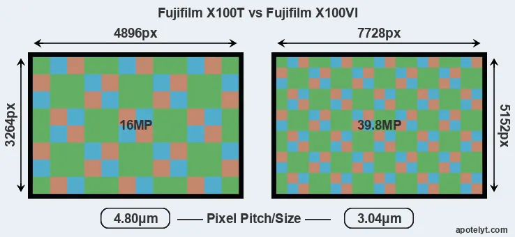 | Sensor Specs | Fujifilm X100T | Fujifilm X100VI |