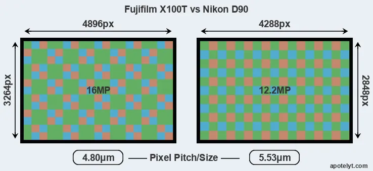 | Sensor Specs | Fujifilm X100T | Nikon D90 |