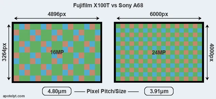 | Sensor Specs | Fujifilm X100T | Sony A68 |