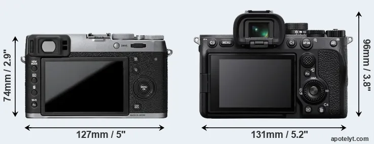 The above size and weight comparisons are to some extent incomplete and possibly misleading, as the X100T has a lens built in, whereas the A7 IV is an interchangeable lens camera that requires a separate lens. Attaching the latter will add extra weight and bulk to the setup. You can compare the optics available for the A7 IV and their specifications in the Sony FE Lens Catalog.