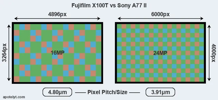 | Sensor Specs | Fujifilm X100T | Sony A77 II |