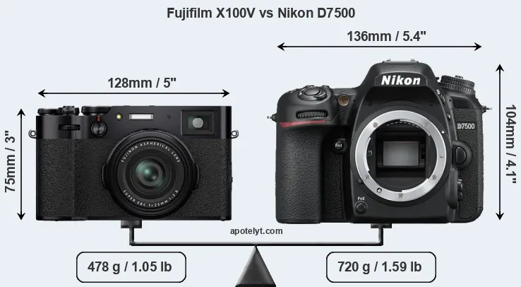 | Body Specs | Fujifilm X100V | Nikon D7500 |
