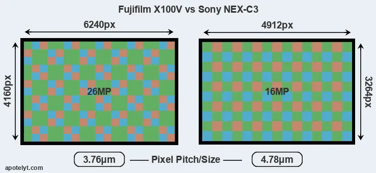 | Sensor Specs | Fujifilm X100V | Sony NEX-C3 |