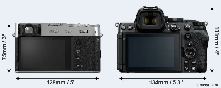 The above size and weight comparisons are to some extent incomplete and possibly misleading, as the X100VI has a lens built in, whereas the Z5 II is an interchangeable lens camera that requires a separate lens. Attaching the latter will add extra weight and bulk to the setup.