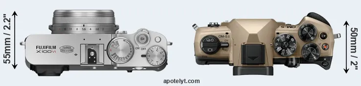 The above size and weight comparisons are to some extent incomplete and possibly misleading, as the X100VI has a lens built in, whereas the OM-5 II is an interchangeable lens camera that requires a separate lens. Attaching the latter will add extra weight and bulk to the setup. You can compare the optics available for the OM-5 II and their specifications in the Micro Four Thirds Lens Catalog.