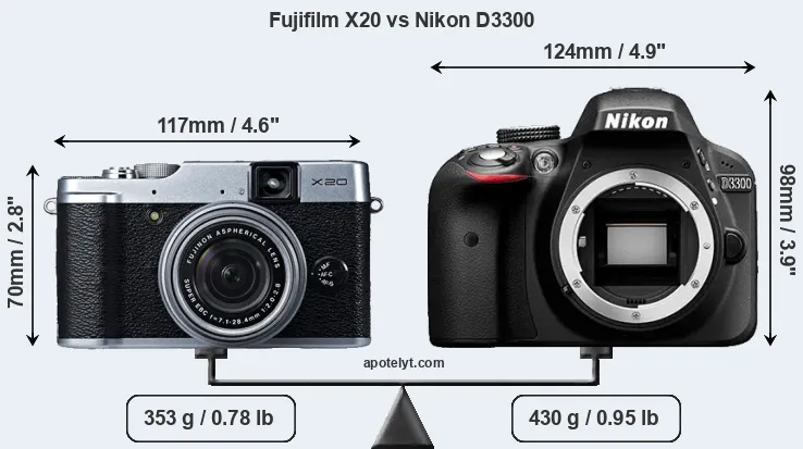 | Body Specs | Fujifilm X20 | Nikon D3300 |