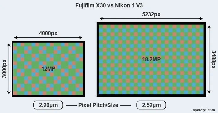 | Sensor Specs | Fujifilm X30 | Nikon 1 V3 |