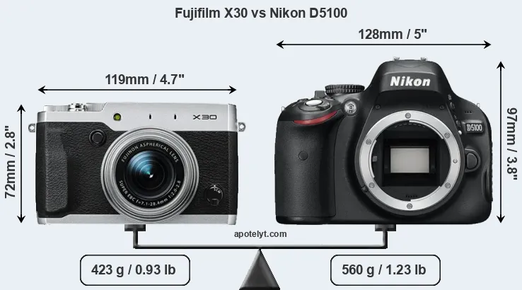 | Body Specs | Fujifilm X30 | Nikon D5100 |