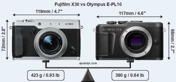Size Fujifilm X30 vs Olympus E-PL10