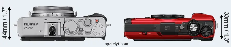 | Camera Model | Fujifilm X70 | OM System TG-7 |