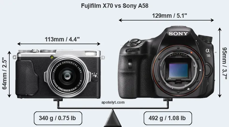 Size Fujifilm X70 vs Sony A58