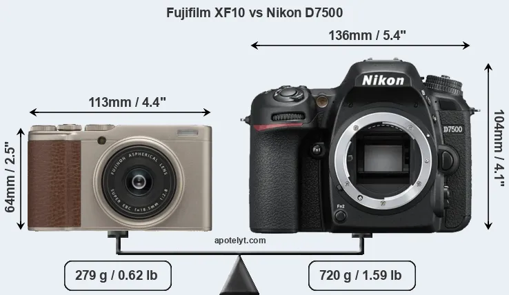 | Body Specs | Fujifilm XF10 | Nikon D7500 |