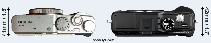 The above size and weight comparisons are to some extent incomplete and possibly misleading, as the XF10 has a lens built in, whereas the E-PL2 is an interchangeable lens camera that requires a separate lens. Attaching the latter will add extra weight and bulk to the setup. You can compare the optics available for the E-PL2 and their specifications in the Micro Four Thirds Lens Catalog.