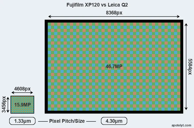 | Sensor Specs | Fujifilm XP120 | Leica Q2 |