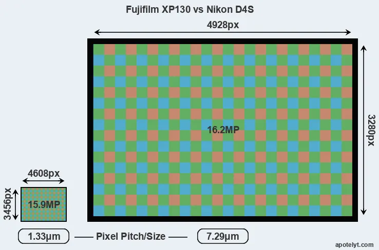 | Sensor Specs | Fujifilm XP130 | Nikon D4S |