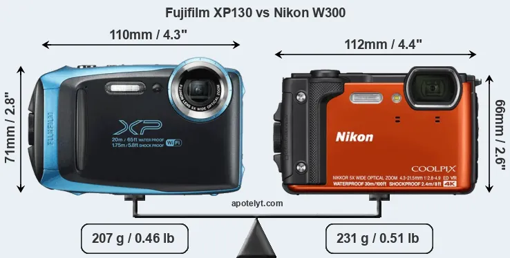 Size Fujifilm XP130 vs Nikon W300