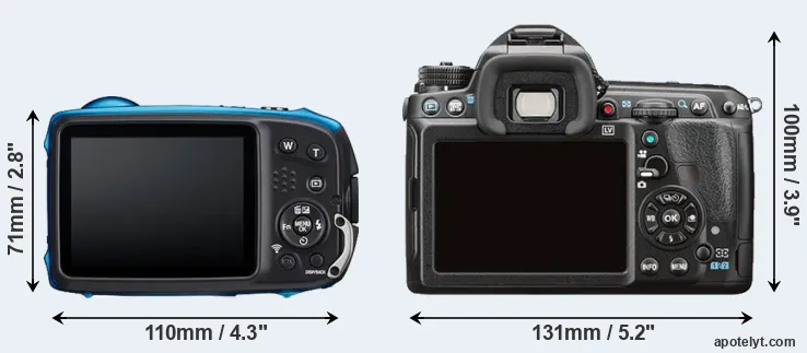 The above size and weight comparisons are to some extent incomplete and possibly misleading, as the XP140 has a lens built in, whereas the K-3 II is an interchangeable lens camera that requires a separate lens. Attaching the latter will add extra weight and bulk to the setup.
