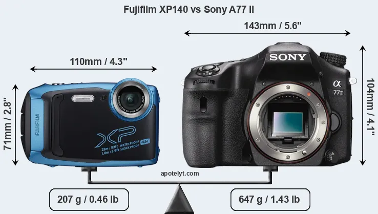 | Body Specs | Fujifilm XP140 | Sony A77 II |