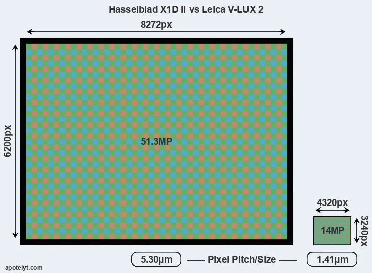 | Sensor Specs | Hasselblad X1D II | Leica V-LUX 2 |