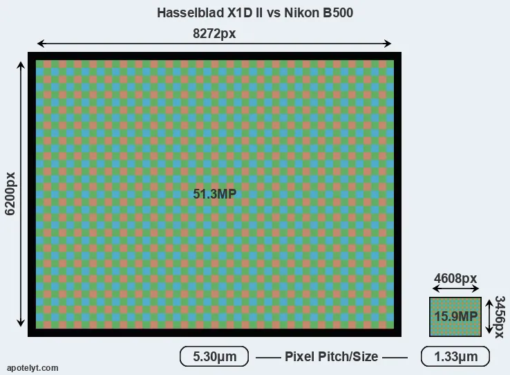 | Sensor Specs | Hasselblad X1D II | Nikon B500 |