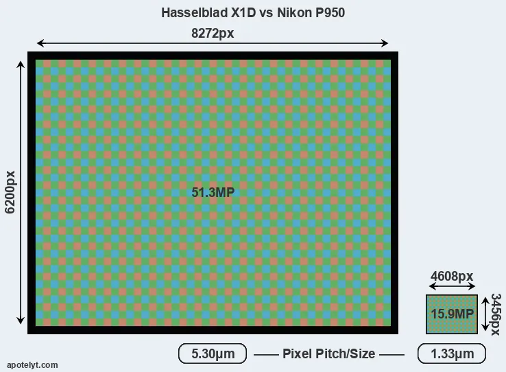 | Sensor Specs | Hasselblad X1D | Nikon P950 |