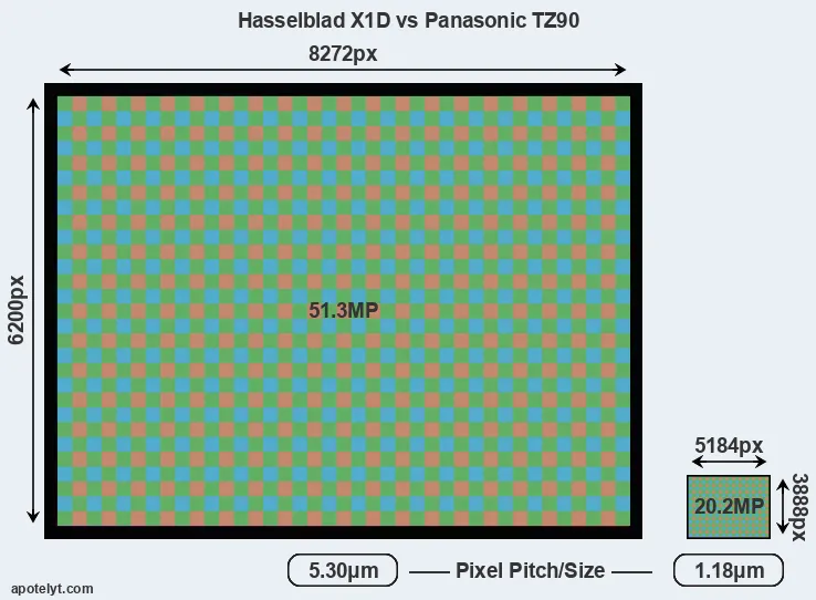 | Sensor Specs | Hasselblad X1D | Panasonic TZ90 |
