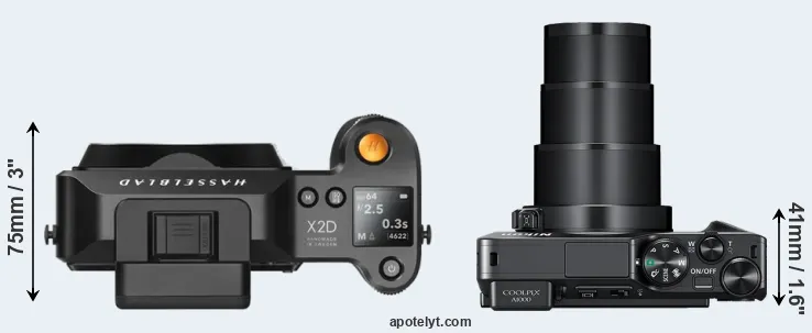 | Body Specs | Hasselblad X2D 100C | Nikon A1000 |